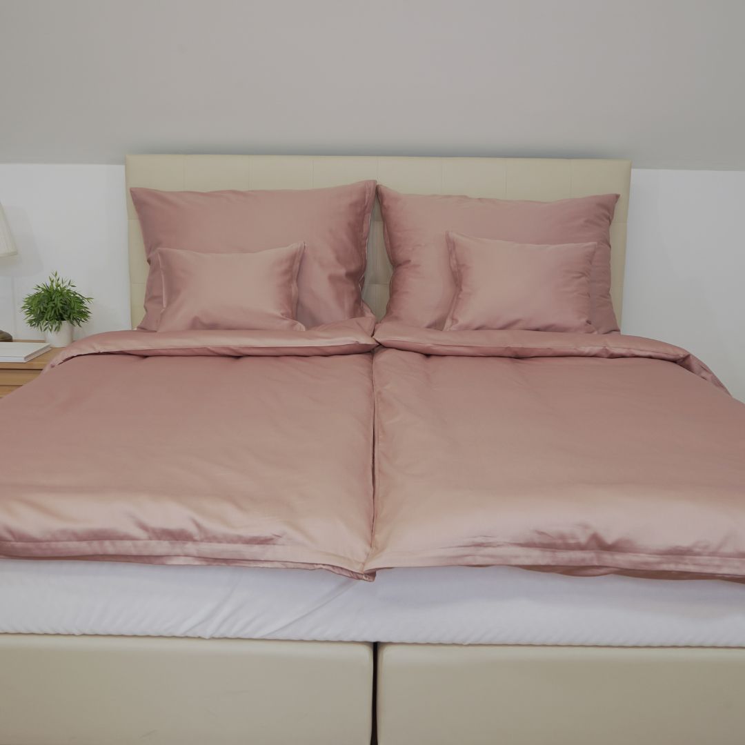 Sandfarbene Satin-Bettwäschegarnitur - TC 300