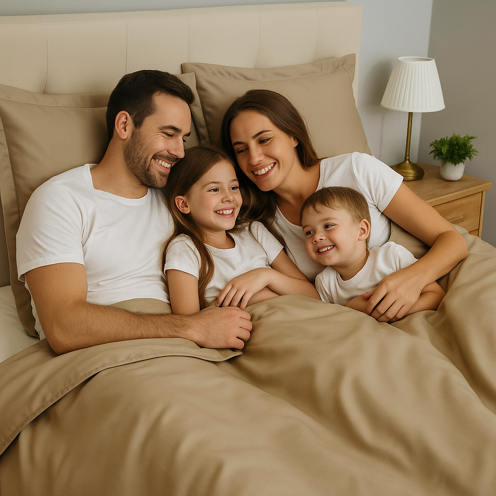 Double cotton sateen bed linen set with English edge - 5 pcs - Hazelnut - TC 250