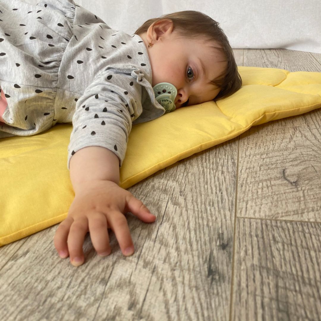 The unique, domestically designed and manufactured, modern wood leaf play mat, designed by Henima design, provides a truly comfortable feeling. The product is made of 100% cotton, which helps regulate body temperature and provides excellent ventilation. It is truly practical, children can play well on it, and when they get tired, they can just spread it over themselves, thus fulfilling the function of a blanket.