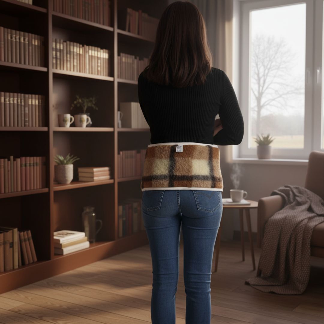 Wool kidney warmer - 25x75 cm - large - brown checkered