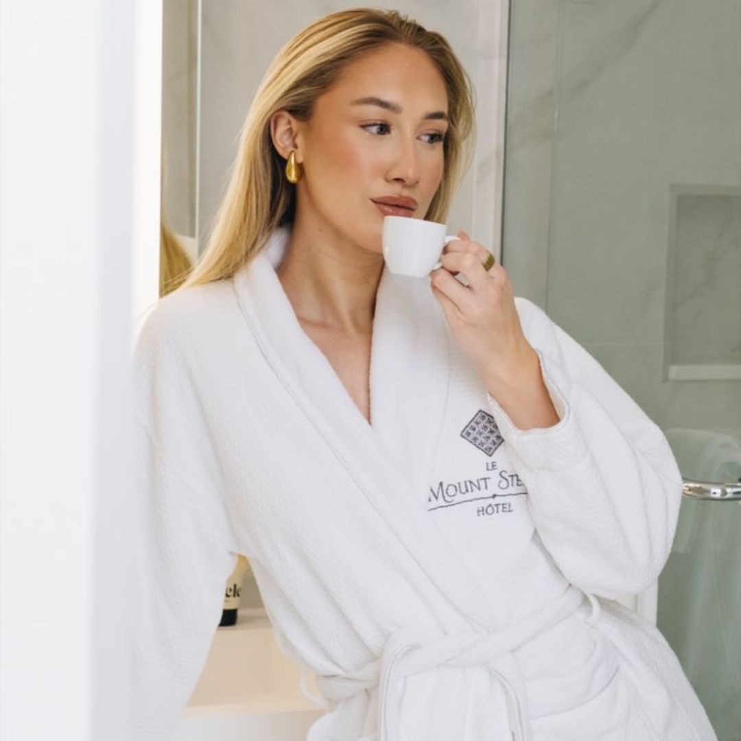 Our terry bathrobe is comfortable for anyone to wear. 100% cotton, thick, highly absorbent. A favorite piece for many due to its practical pockets and adjustable belt.