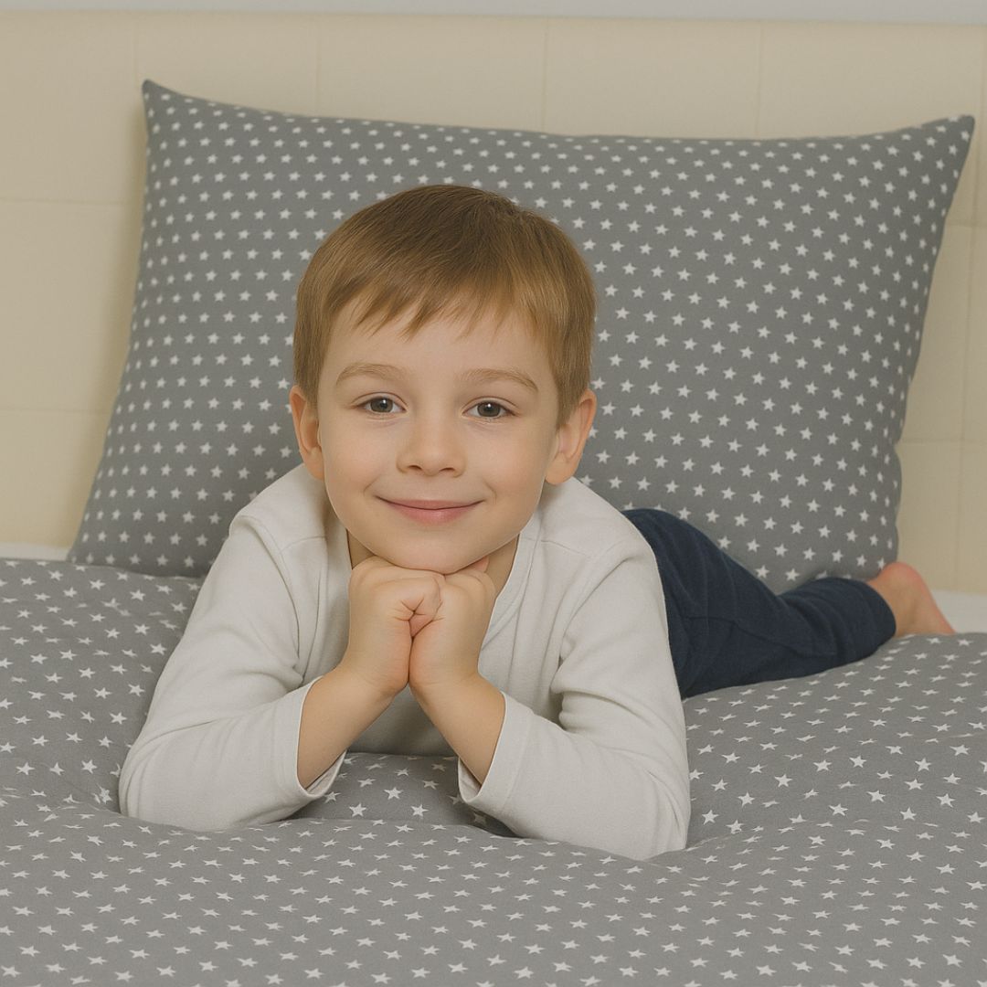 Cotton bed sheet set - 3 pcs - Grey and white stars