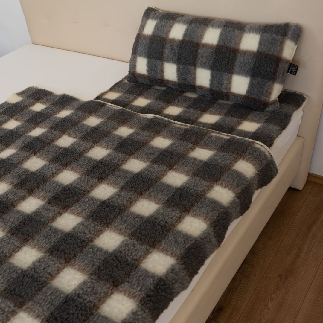 Gyapjú barna kockás vesemelegítő és hengerpárna - szett