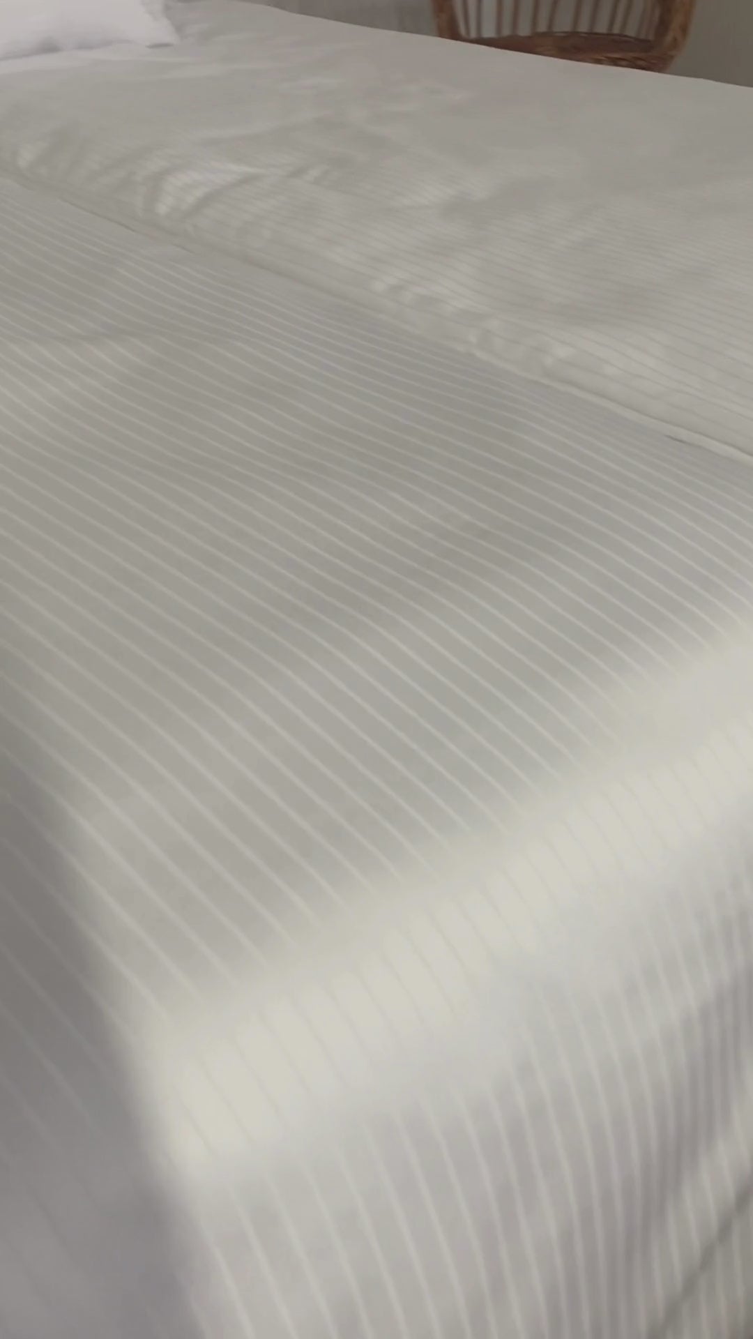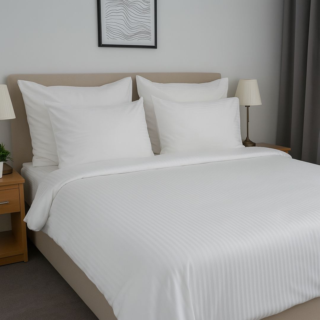 A szatén csíkos minta fényes, ragyogó hatást kelt, amely prémium, luxus érzetet visz a hálószobába vagy a hotelszobába.