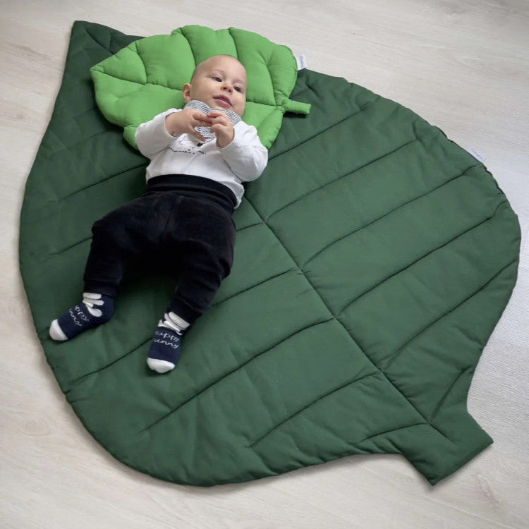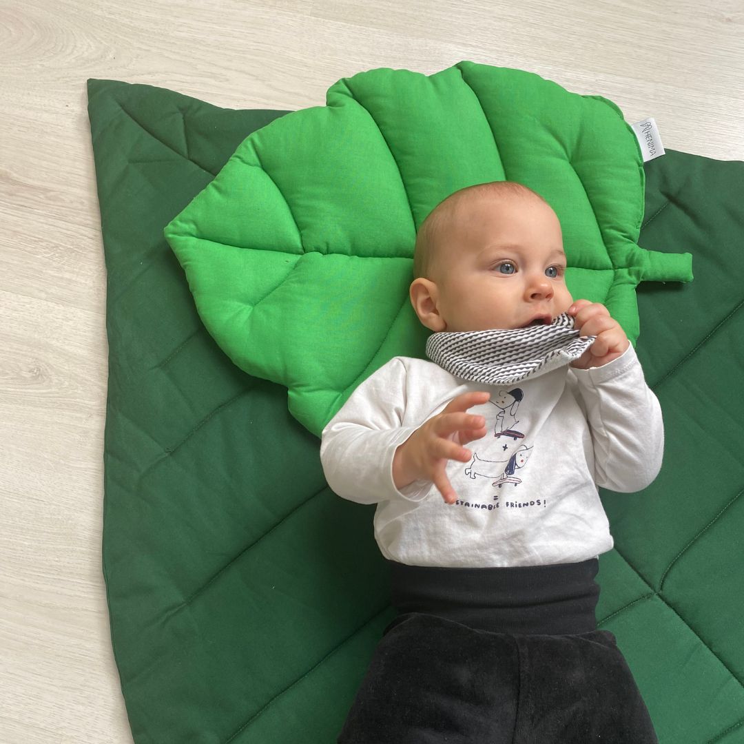 Falevél gyerek játszószőnyeg és takaró - méregzöld