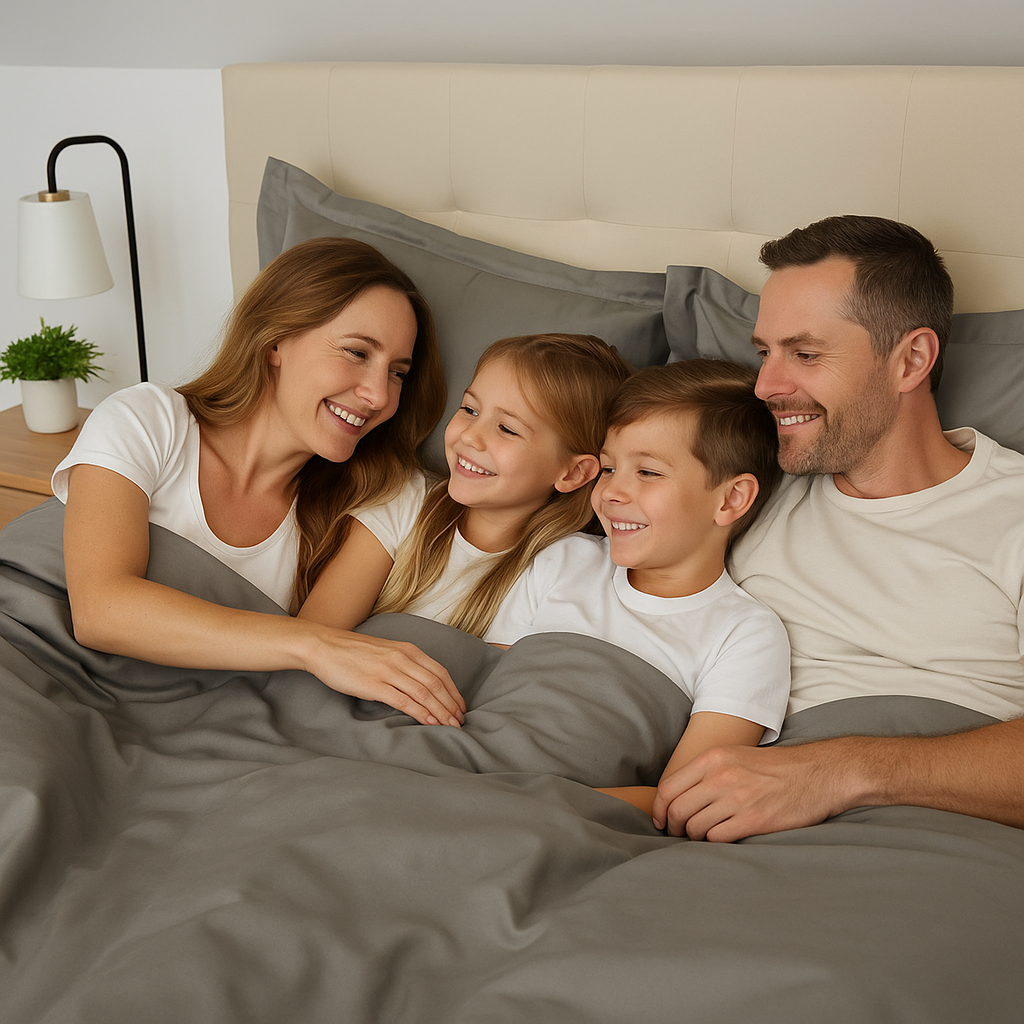 Doppeltes Baumwollsatin-Bettwäscheset mit englischem Rand - 5-teilig - Stahlgrau - TC 250
