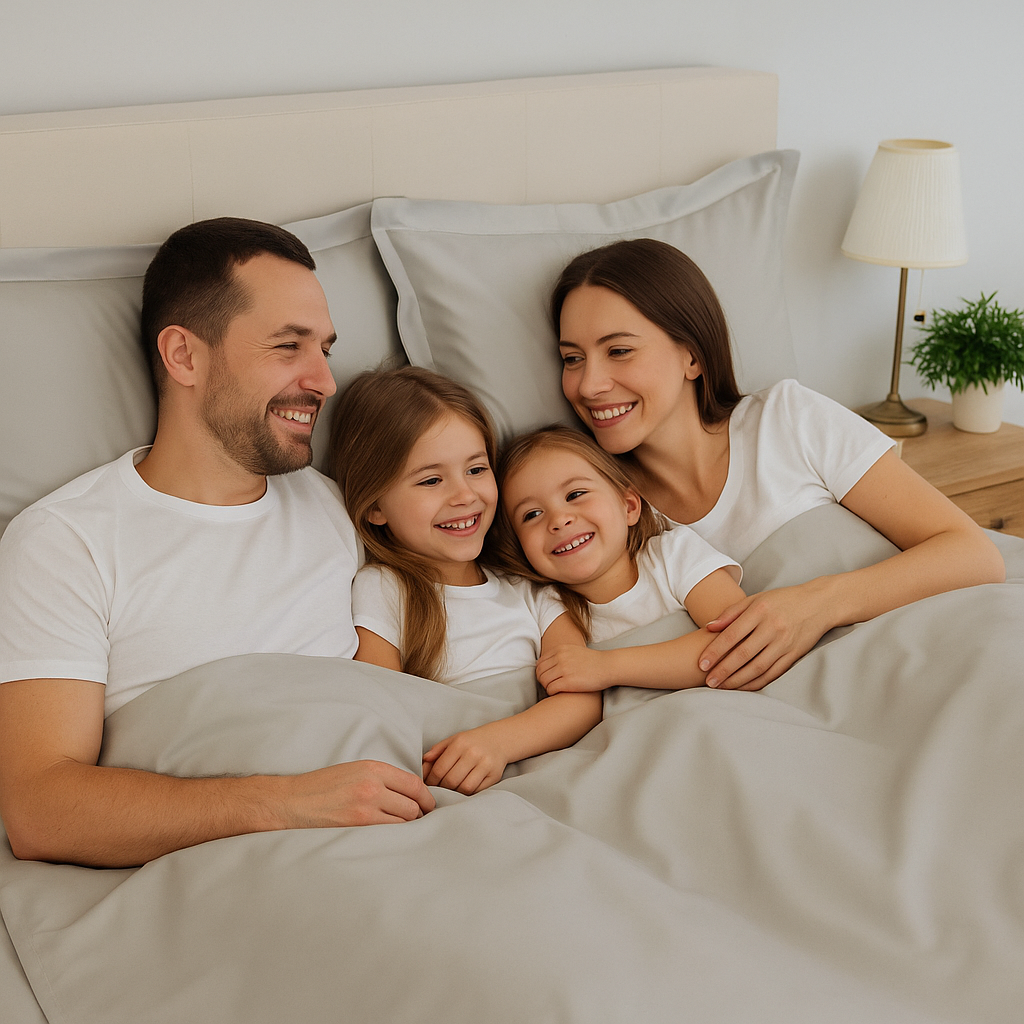Doppeltes Baumwollsatin-Bettwäscheset mit englischem Rand - 5-teilig - Hellgrau - TC 250