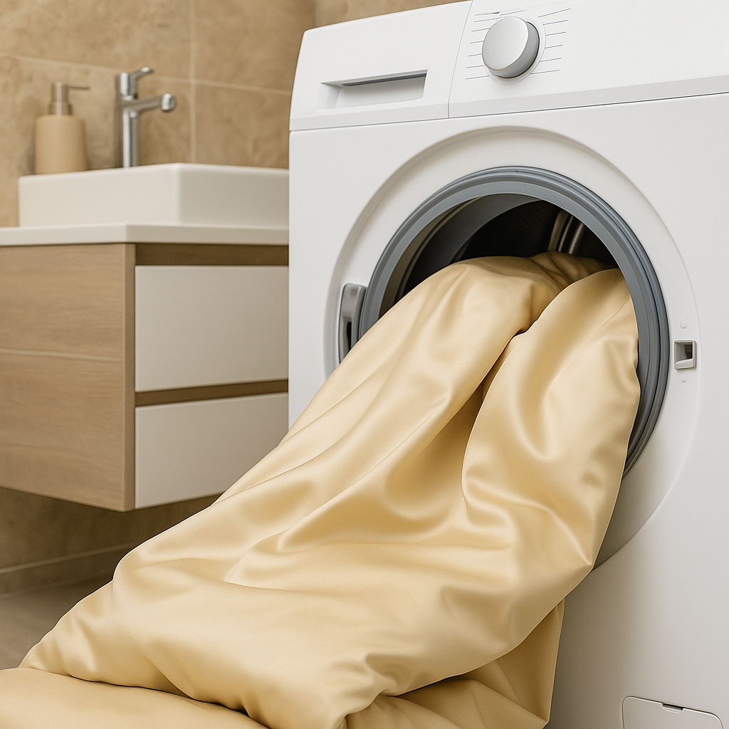 Doppeltes Baumwollsatin-Bettwäscheset mit englischem Rand - 5-teilig - Hellgold - TC 250