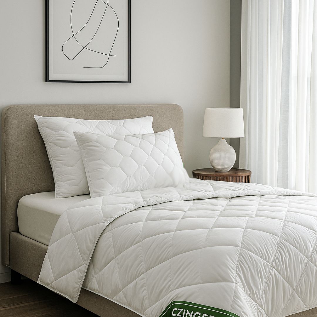 Das Family Extra-Set ist warm, angenehm anzufassen und pflegeleicht. Der Bezug aus einer Baumwoll-Polyester-Mischung ist leicht zu waschen und zu pflegen. Die weiche, leichte Faserfüllung der Bettdecke hält sie geschmeidig und in Form und sorgt gleichzeitig für hervorragende Isolierung und optimale Belüftung des Körpers. Dies sorgt für eine gleichmäßige Temperatur während der ganzen Nacht und eine angenehme Erholung.