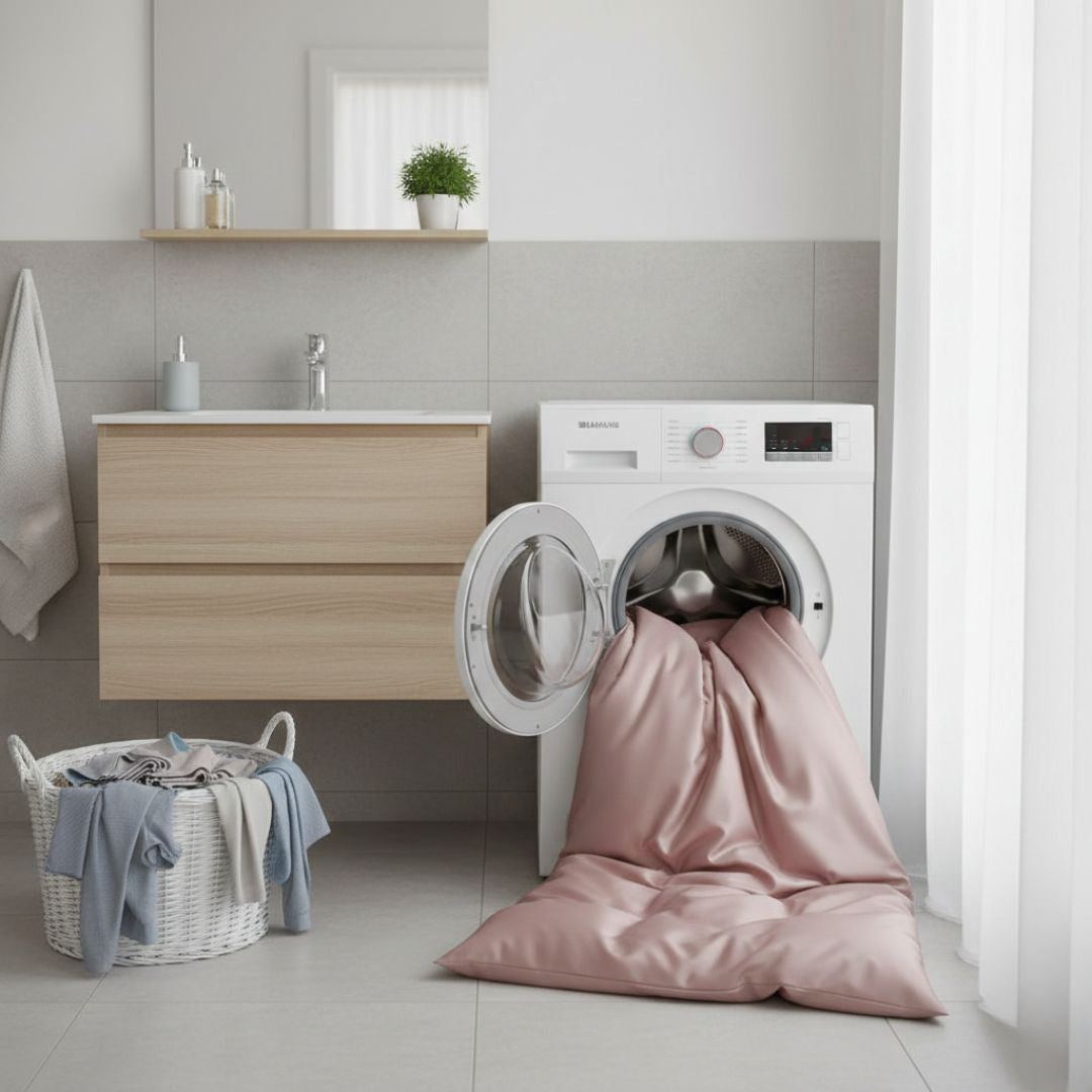 Waschen Sie Bettwäsche auf links, mit Buntwaschmittel, bei 90°C und getrennt von anderen Textilien.
