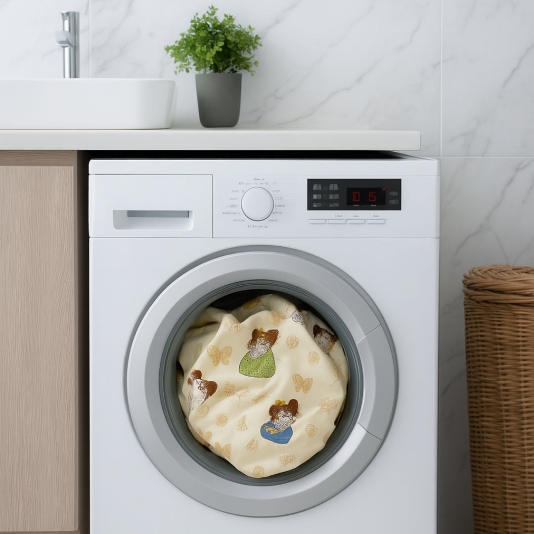 Waschen Sie Bettwäsche auf links, mit Buntwaschmittel, bei 40°C und getrennt von anderen Textilien.